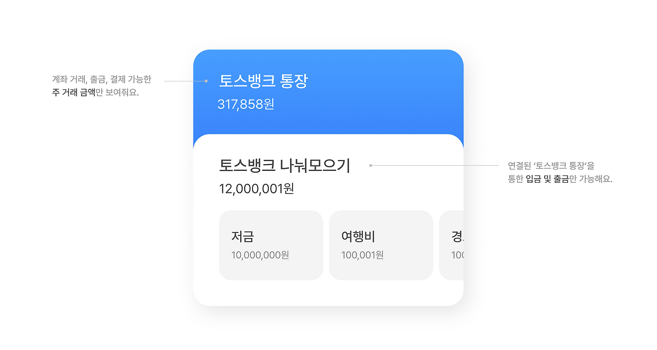 저는 평소에 토스뱅크 통장에 모든 금액을 다 넣고 사용했는데 그랬을 때 내가 얼마를 썼는지, 얼마를 저금했는지 일일이 계산해야 되어서 불편을 느꼈는데요,
