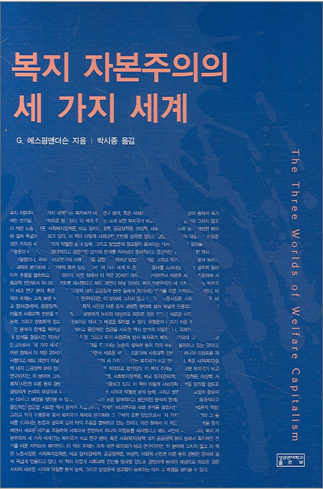 '복지 자본주의의 세 가지 세계'는 에스핑 앤더슨의 복지 이론에 대한 대표작입니다. 앤더슨은 정치, 경제적 조건에 따라 분기된 복지 제도의 유형을 셋으로 나누고 나라별, 제도별 복지 제도가 어느 유형에 포함되는지 밝히고 있습니다. 먼저 '자유주의 복지체제'가 있습니다. 대표적인 나라로는 미국과 영국이 있습니다. 자유주의 복지체제는 개인의 자유를 강조하며 (의료보험, 교육 등) 복지 서비스가 시장에서 거래되는 것을 선호합니다. 복지 서비스가 상품화되어 있기도 하고 아닌 것도 있는 경우입니다. '보수주의 복지체제'는 조합주의 복지 체제라고 불리기도 합니다. 주로 가톨릭 주의와 국가주의 전통이 강한 독일, 이탈리아 같은 나라들이 대표적입니다. 이런 나라들은 자유주의 체제보다 복지서비스의 상품화가 덜합니다. 대신 전통적 사회관계를 강화하는 복지 서비스를 제공합니다. 마지막으로 '사회민주주의 체제'가 있습니다. 앤더슨은 사민주의 국가들이 공산주의 이념과 어떻게 결별하고 현실적 평등주의를 실현했는지 보여주며, 비례대표제 같은 정치제도가 복지 체제의 구축에 어떤 영향을 미치는지를 비교정치학적 관점에서 제시합니다.
