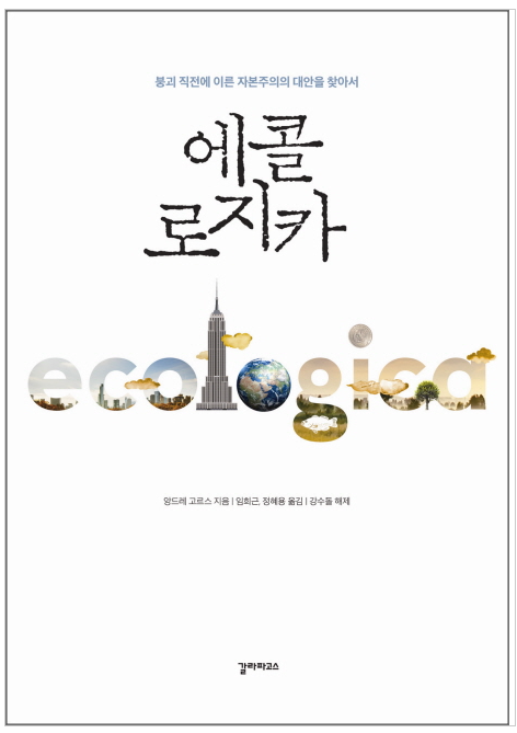 에콜로지카는 생태학이라는 뜻입니다. 책 에콜로지카는 프랑스의 문인이자 철학자인 앙드레 고르의 생태 정치학 책입니다. 고르는 환경 파괴 자체를 문제 삼기보다는 환경이 파괴되는 정치, 경제적 조건을 문제 삼고 이를 개선하자고 이야기합니다. 그가 보기에 자본주의는 근본적으로 반생태적입니다. 왜냐하면 자본주의는 성장을 심장으로 하는 체제이기 때문입니다. 자본주의는 환경 파괴를 하고서라도 성장을 해야 하고 자본주의의 소비지상주의는 환경과 인간의 삶 모두를 피폐하게 만든다고 날카롭게 지적합니다. 그가 보기에 좋은 공동체는 자전거를 타고 오고 갈 수 있는 정도의 크기를 가져야 합니다. 그것이 자연에도 인간에게도 좋습니다. 가끔 먼 곳을 갈 때는 공유 자동차를 사용하면 됩니다. 이 책에는 공유 경제, 기본 소득 등의 아이디어가 미리 제시되어 있고, 경제 위기의 도래를 예언하는 등 철학자의 혜안을 잘 보여주고 있습니다. 이 책에서 그가 강조하는 삶의 자세는 '자기 제한의 원리'입니다. 무조건 많이 벌고 먹고 쓸 것이 아니고 자신의 삶에서 필요한 것이 무엇인지 정한 후 그것을 구입하고 소비할 수 있을 정도로만 일하고자 하는 자기 제한의 원리가 인간의 삶을 풍요롭게 하고 생태 환경도 살린다는 것입니다.