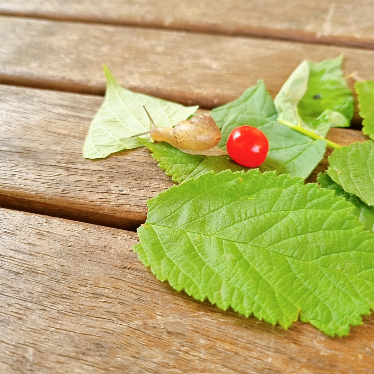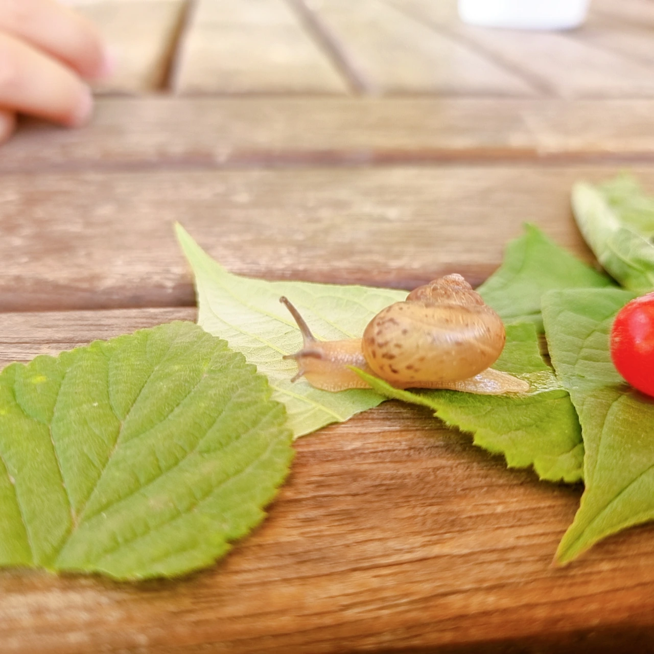 엄마, 달팽이는 빨간 열매가 싫은가 봐요.