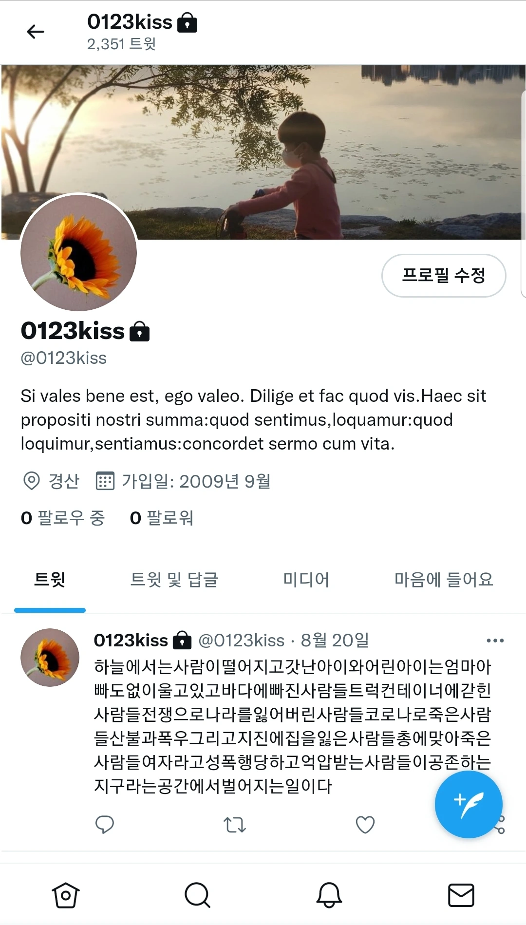 평상시보다는 마음이 울적하고 슬플 때 되는 일보다 안 되는 일이 많을 때 그리고 힘들 때 글을 쓰면 때론 나 자신에게 심리적 안정을 가져다 줄 때도 있다. 그래서 글은 기쁠 때보다는 슬플 때 잘 쓰인다.