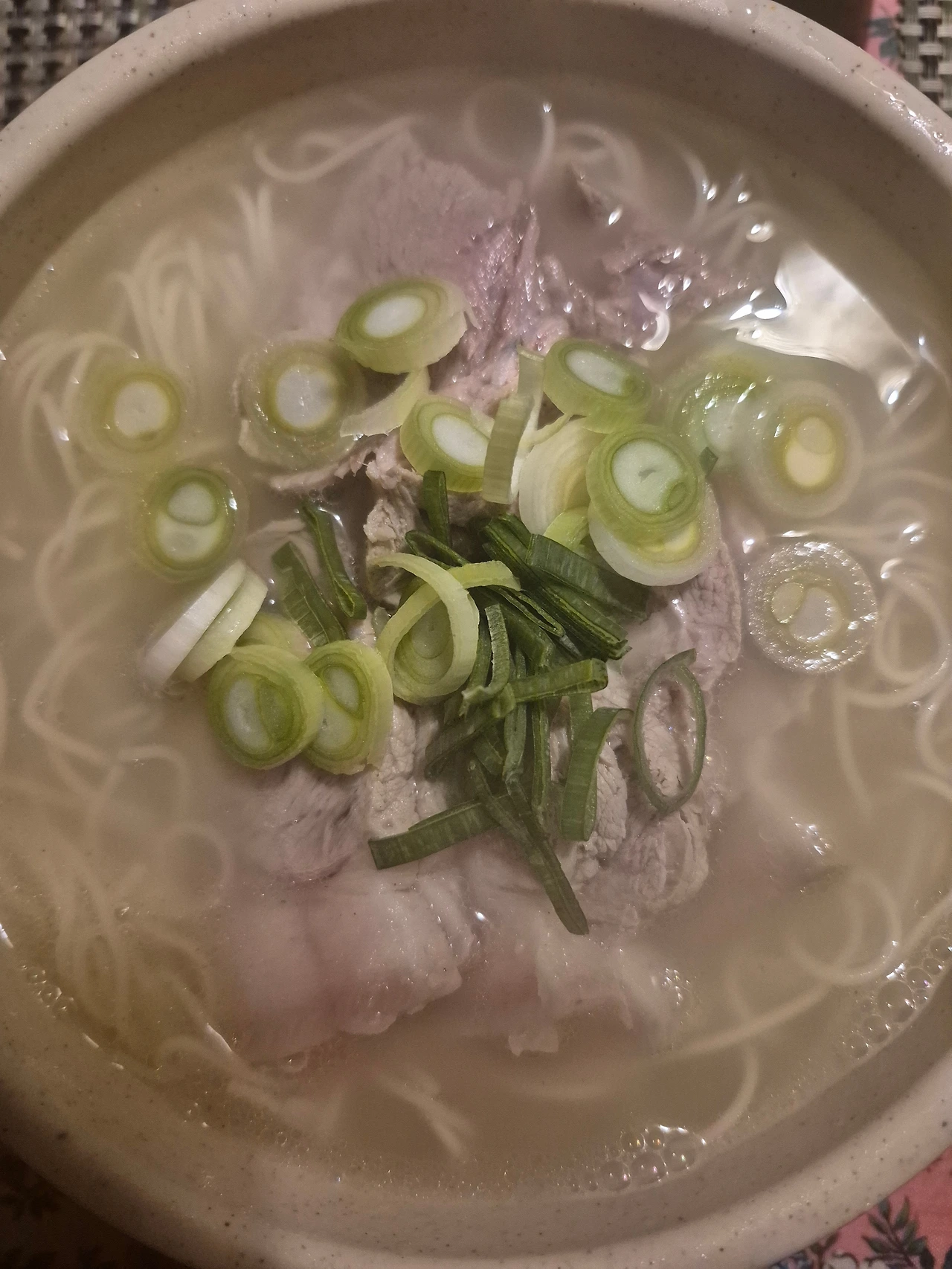 저녁 당번인 신랑이 만든 고기국수를 배불리 먹었다.