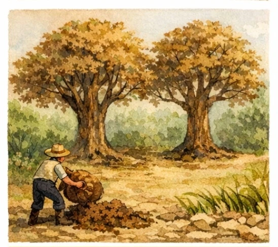 주인은 그 나무들이 더 잘 자라길 바라며 거름도 듬뿍 주었지요.