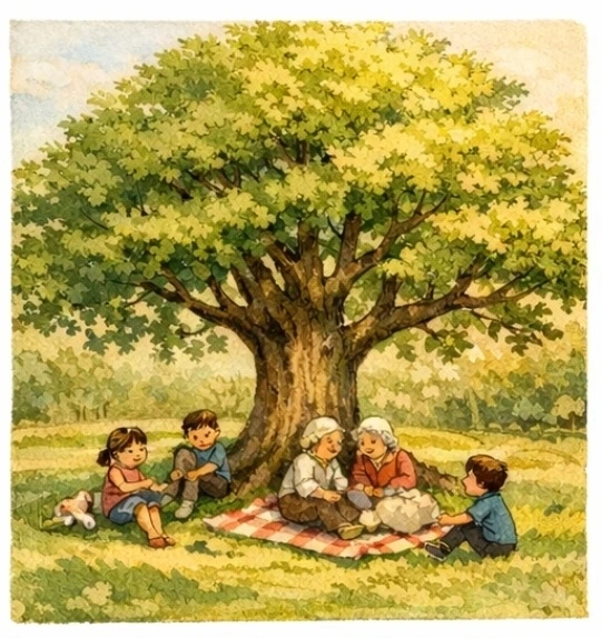 옛날 어느 조용한 정원에 느티나무 세 그루가 살고 있었어요.