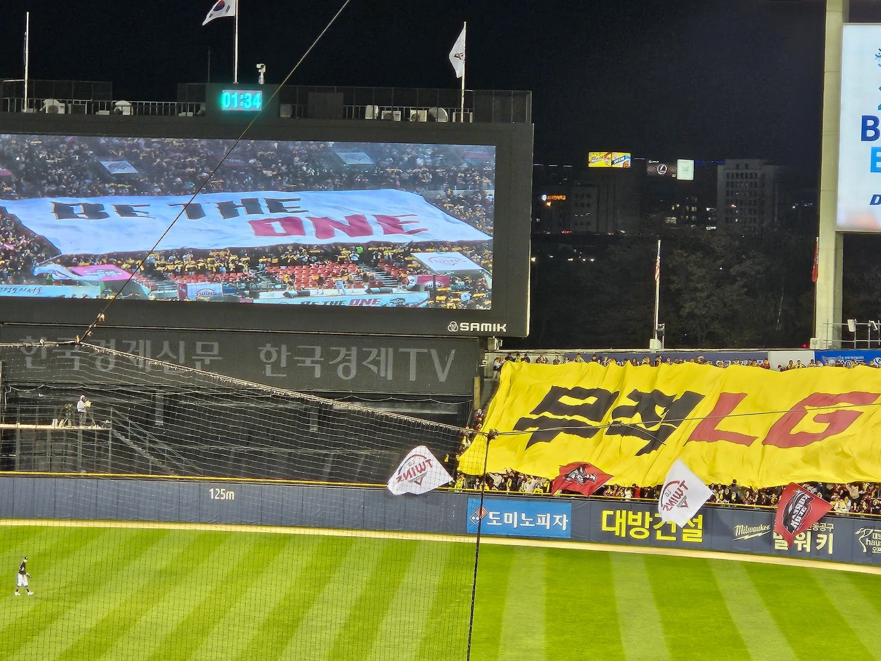 바로 1차전이었다. 어렵게 구한 한국 시리즈 직관 티켓이었다. 내가 한국 시리즈를 가다니! 설레는 마음에 전날 잠도 제대로 못 자고 출근길에는 미리 유광점퍼와 응원도구를 바리바리 챙겨 직관 준비를 단단히 마쳤다. 평소보다 일찍 퇴근하고 잠실까지 갔다 이 말이다. 1회까지는 분위기가 좋았다. 선취점을 1점 내주긴 했지만 곧바로 2점 따라잡으며 역전했기 때문이다. 그리고 중간중간에도 무려 삼중살 호수비가 나오며 이거 오늘 되는 경기라는 느낌이 팍팍 들었다.
