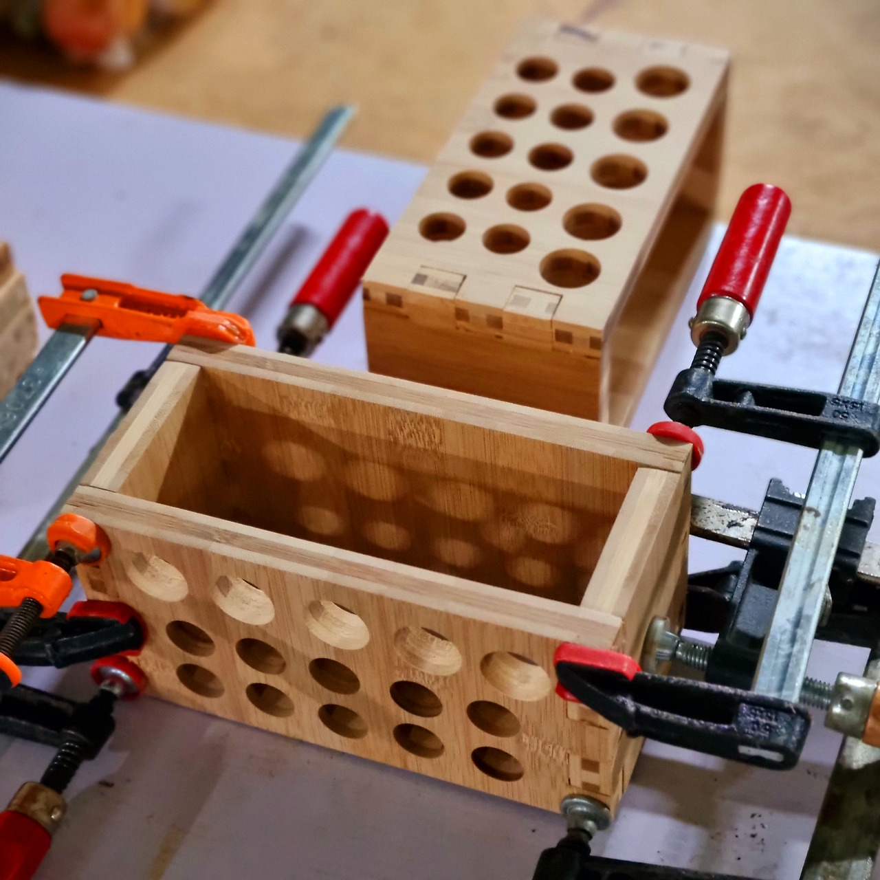 거치대 작업을 끝내자 세상의 평화가 왔다. 남은 대나무로 책상 위에 놓을 펜꽂이를 여유있게 만들어 본다.