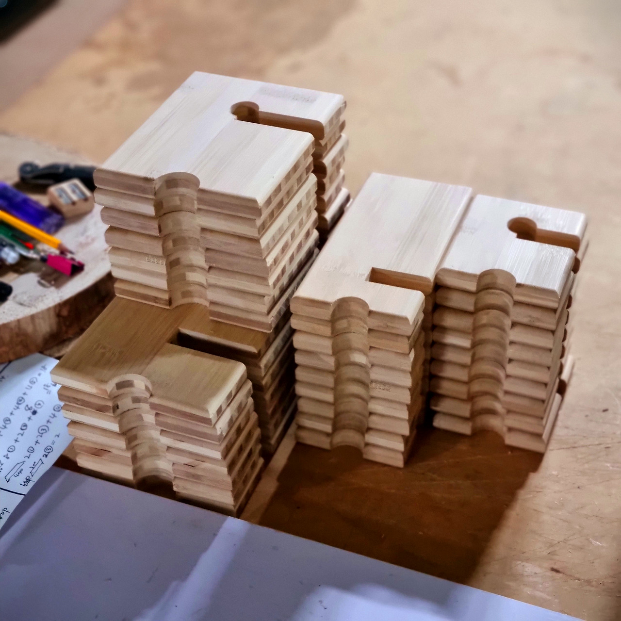 80개의 형태만 잘라내는데도 한참 걸렸다. 하지만 이후 작업이 더 오래 걸린다. 80개의 샌딩(사포질), 80개의 레이저 각인, 80개의 오일링... 무한 반복의 지옥은 아직 끝나지 않았다.