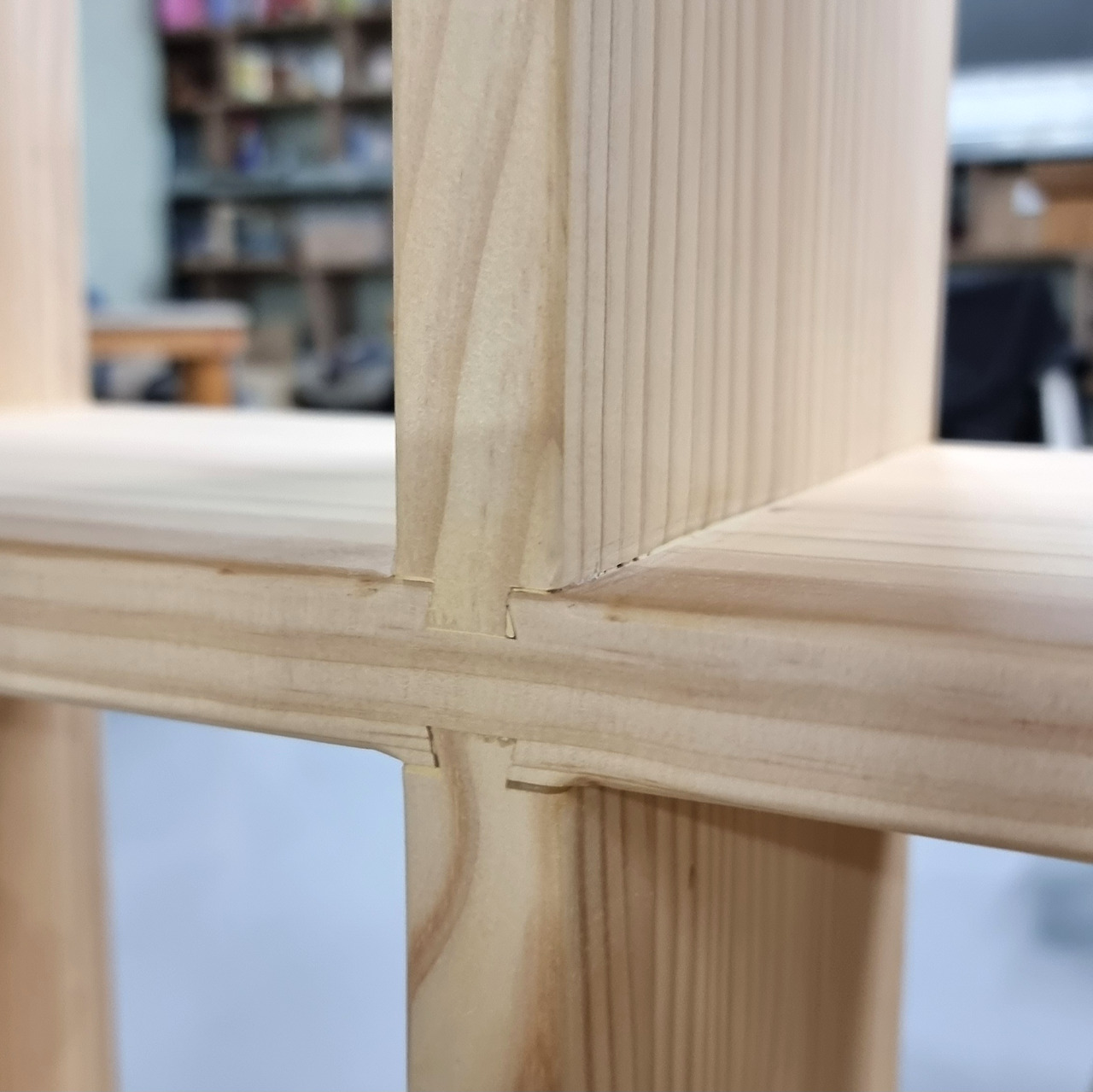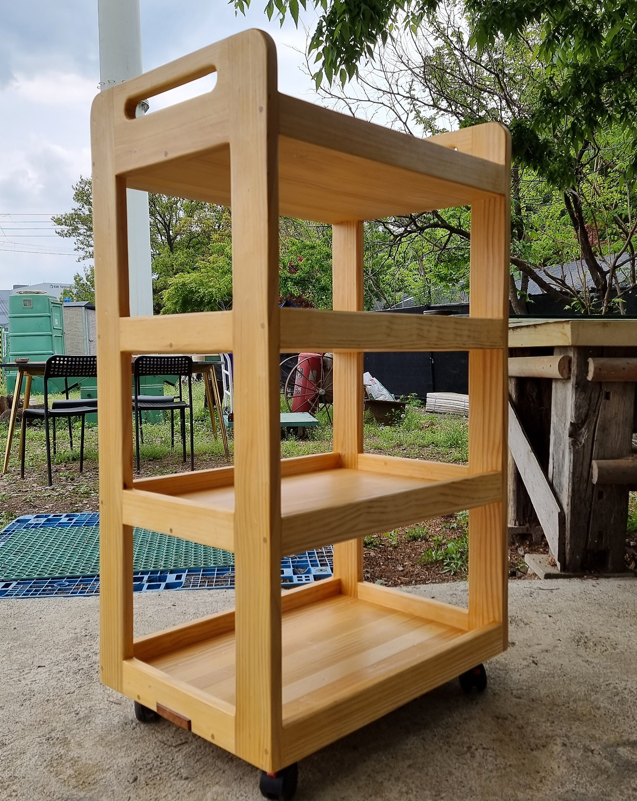 많은 사람들이 소나무는 목재도 고급으로, 가격도 비싸고, 목질은 단단할 것으로 생각한다. 하지만 반대로 소나무는 원목 중에 저가형 목재다. 목질이 부드럽고 가벼워 가공이 수월한 편이고 무난한 크림색으로 대중성이 높다고 해야 할까? 소나무 목재는 이 '무난함'이 특징이다. 그래서 목공에서는 주로 책장이나 상자 등의 무난한 기능형 가구를 만들 때 자주 사용하는 편이다. 상대적으로 가격도 저렴해 사이즈가 큰 가구를 만들기 좋지만 목재가 약한 편이라 자주 긁히는 책상은 추천하지 않는다.