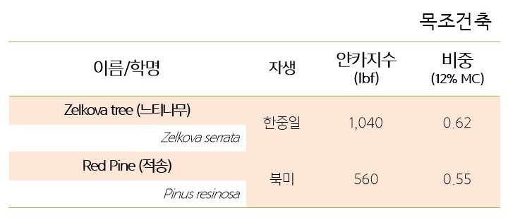 국립산림과학원에서 2000년부터 5년에 걸쳐 우리나라 국보 및 보물급 목조 문화재의 수종구성을 조사한 바 있다. 눈에 띄는 부분은 고려시대의 현존하는 대표적인 건축물 부석사 무량수전, 수덕사 대웅전, 봉정사 극락전의 기둥으로 사용된 목재들이다. 중고등학생시절 국사 시간에 4지 선다형으로 달달 외웠던 고려시대 목조건축 3형제는 무슨 나무로 지어졌을까 궁금했다.