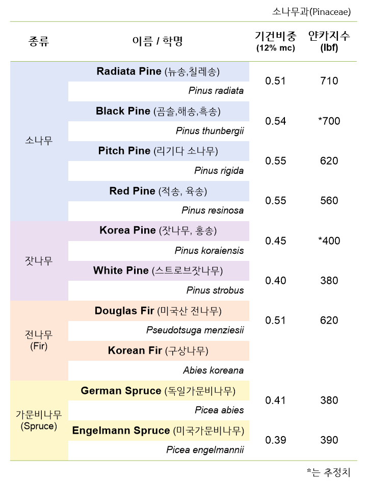 비교적 자주 거론되는 소나무과(Pinaceae) 목재를 한번 정리해 본다.