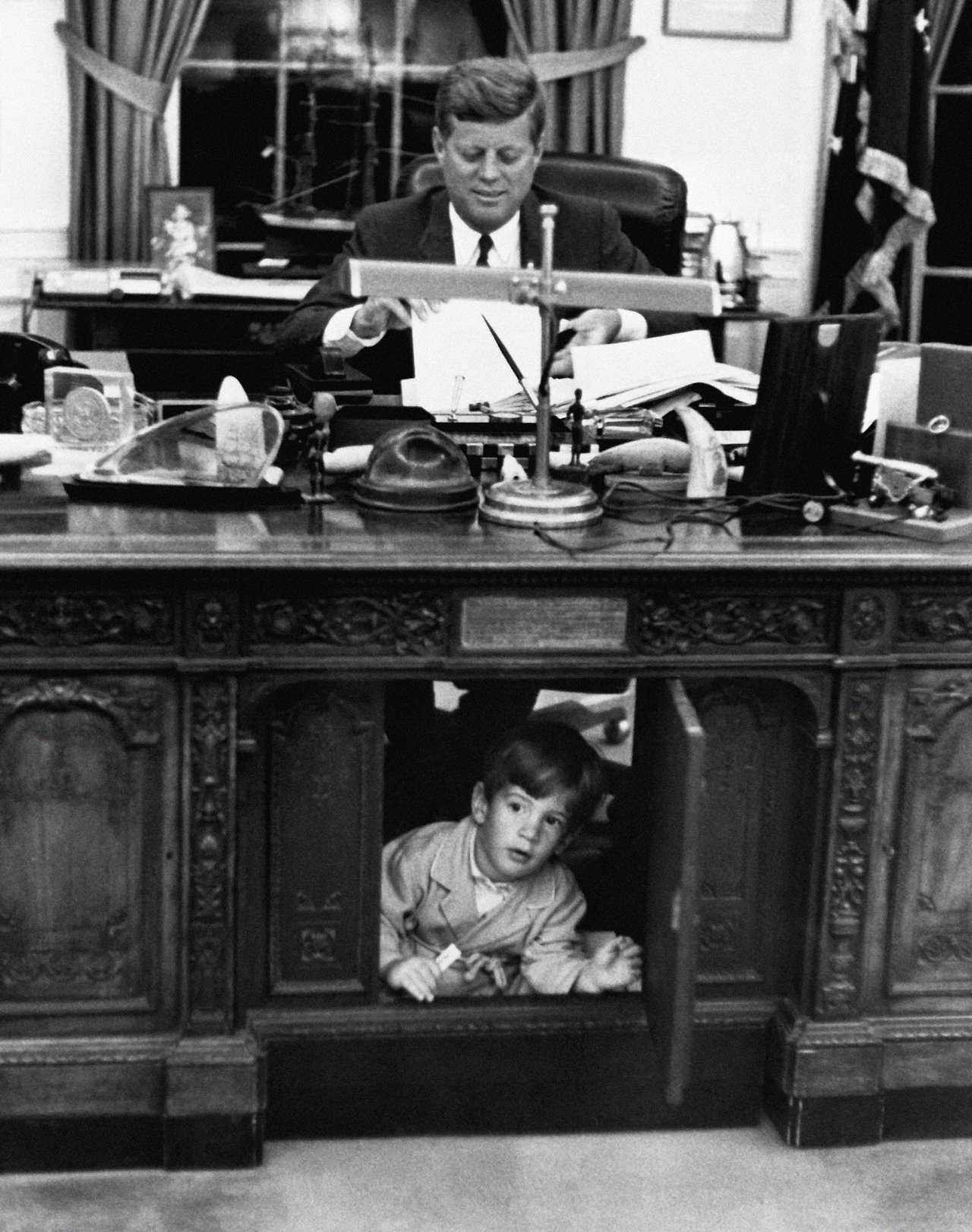 올해로 미국에 도착한지 150년이 되어가는 결단의 책상(Resolute Desk)은 케네디 대통령이 1961년 집무실 책상으로 사용하면서부터 비로소 대중적 상징이 된다. 대통령은 집무를 보고 아들 케네디 주니어는 책상 밑에서 놀고 있는 사진으로 확실한 유명세를 탄 것.