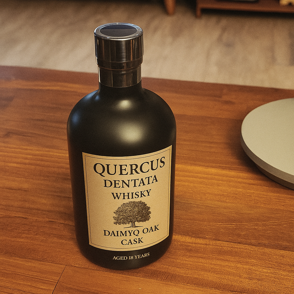 AI를 이용해 상수리와인, 떡갈위스키, 신갈소주의 이미지를 만들어봤다. 시중에 판매 중인 37도 증류주인 독도소주를 이용했다. 상수리나무 오크통에서 숙성한 상수리와인, 떡갈나무 오크통에서 숙성한 Quercus Dentata(떡갈) 위스키, 신갈나무 오크통에서 숙성한 신갈 소주를 상상해본다.