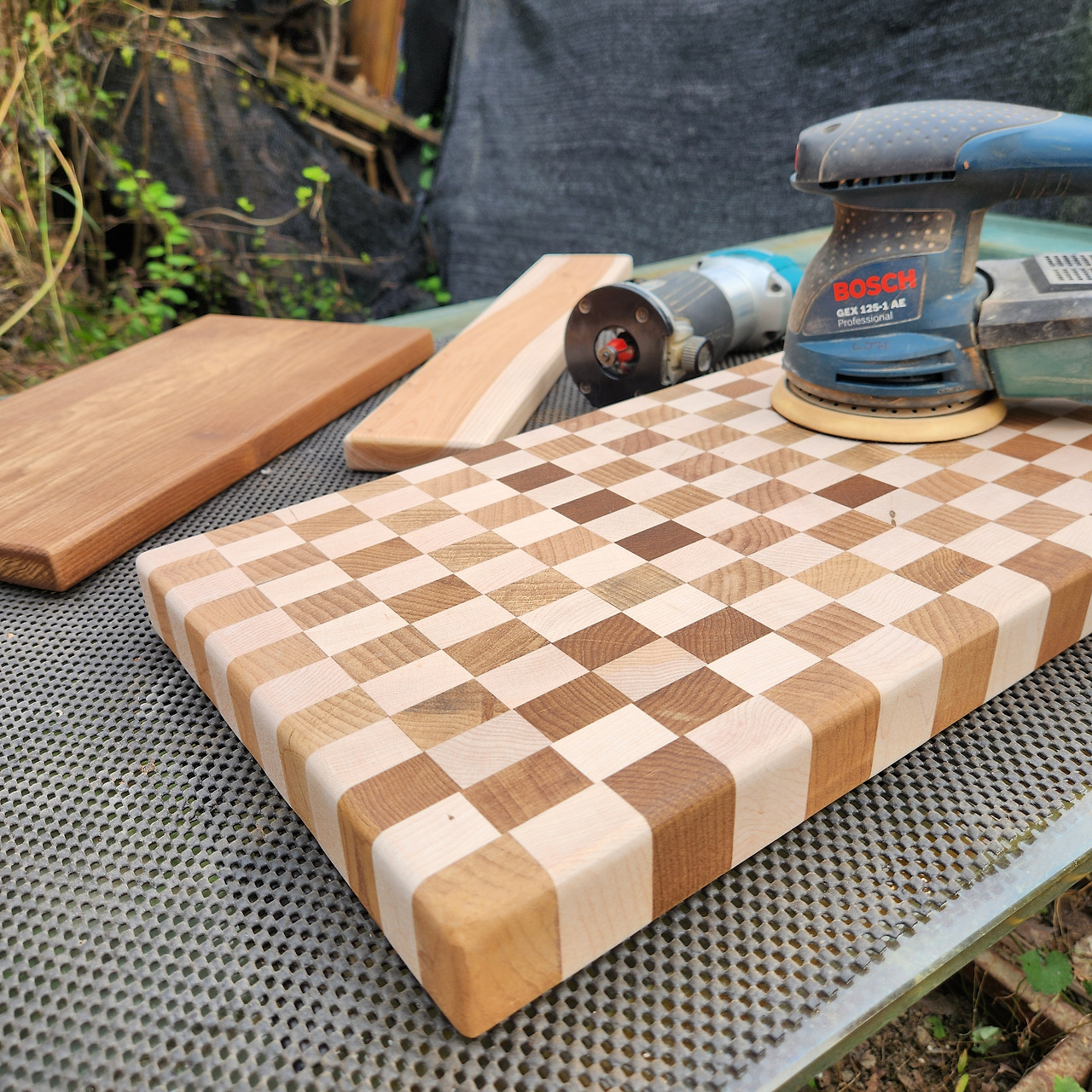 가로 460mm 세로 270mm로 만들어진 사진 속 도마들은 주인이 모두 정해졌다. 하지만 정작 우리집에는 엔드그레인 도마가 없다. 명백한 두가지 이유가 있다. 첫 번째 이유는 아내가 무거운 도마를 원하지 않아서고 두 번째 이유는 아내가 큰 도마를 원하지 않아서다. 그런데 이번에 만든 도마는 명백하게 무겁고 큰 도마다.