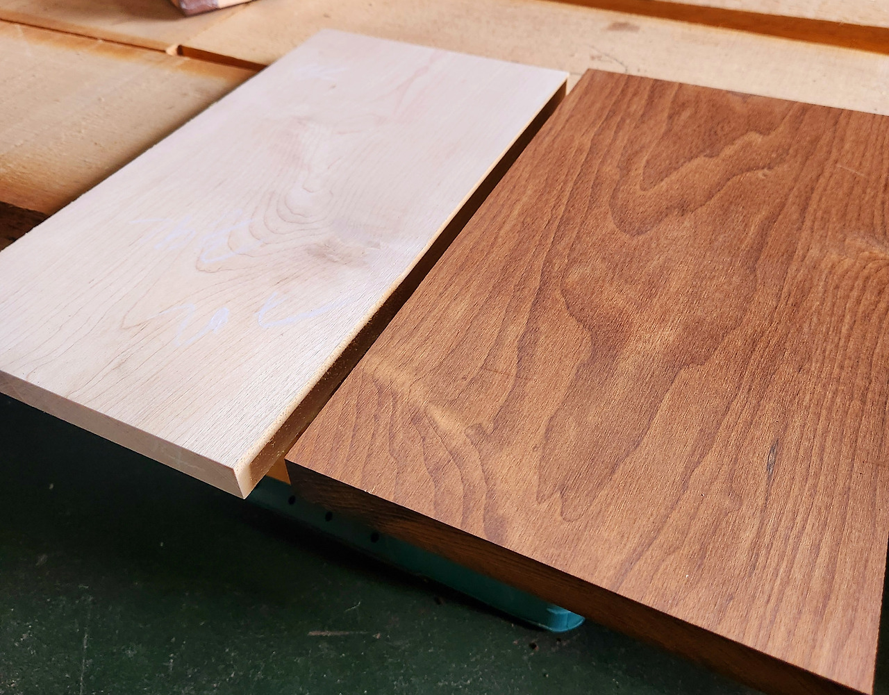 단풍나무인 메이플 목재는 대개 밝은 색상을 갖고 있다. 탄화과정을 거치고 나면 색상이 진해지는데 이것을 '탄화 메이플'이라 한다. 탄화목을 만드는 것은 거의 모든 나무가 가능하다. 하드 메이플과 탄화 하드메이플 목재를 보면 색감 차이가 두드러진다. 이번엔 '같은 목재, 다른 색깔'로 목공작업을 해야 할 것 같다.