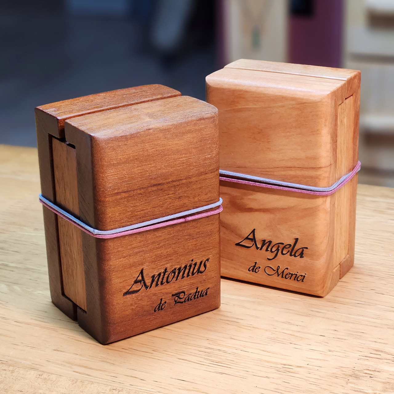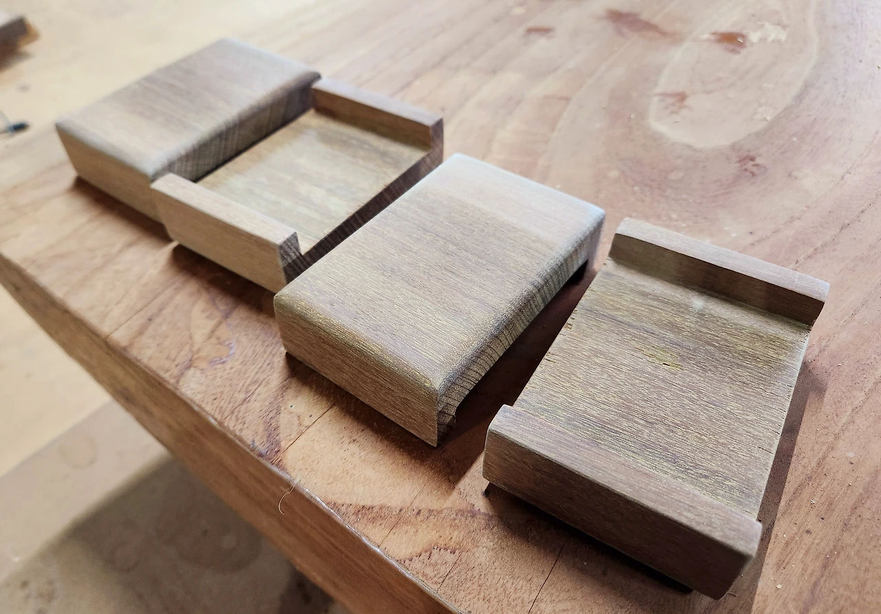 한 두 개 만들어봤던 것을 SNS에 올렸더니 주문의뢰가 적잖이 들어왔던 기억이 난다. 나무도 제각각 올리브나무, 박달나무, 보고테 등등이지만 단단하고 밀도가 높은 나무들로만 작업했다.