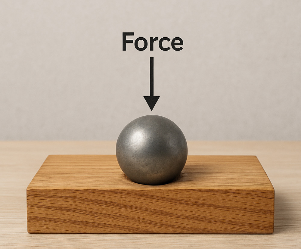 직경 11.28mm (0.444인치)의 강철구를 목재에 절반의 깊이까지 눌러 넣는 데 필요한 힘을 측정한다. 직경은 정확히 100 mm²의 면적을 가진 원을 만들기 위해 선택된 것.