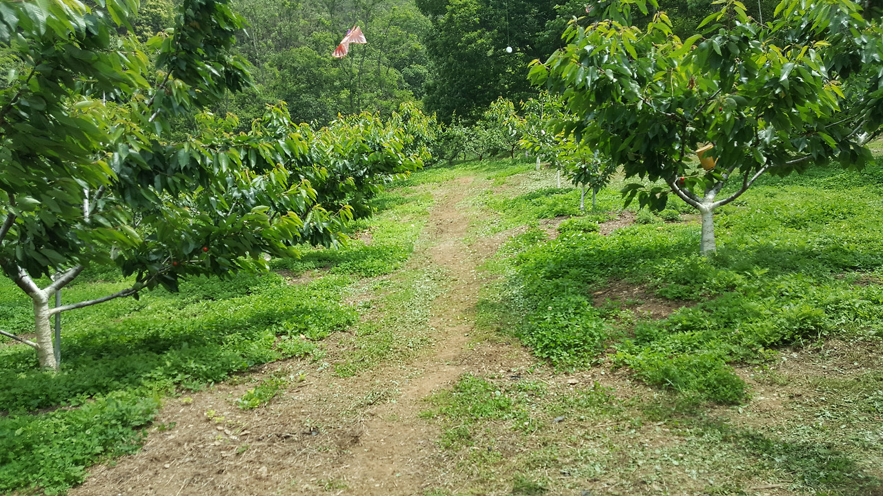 체리농장은 산 밑에 있다. 잡풀로 우거졌던 휴경지에 풀을 베고 체리묘목을 심었다.