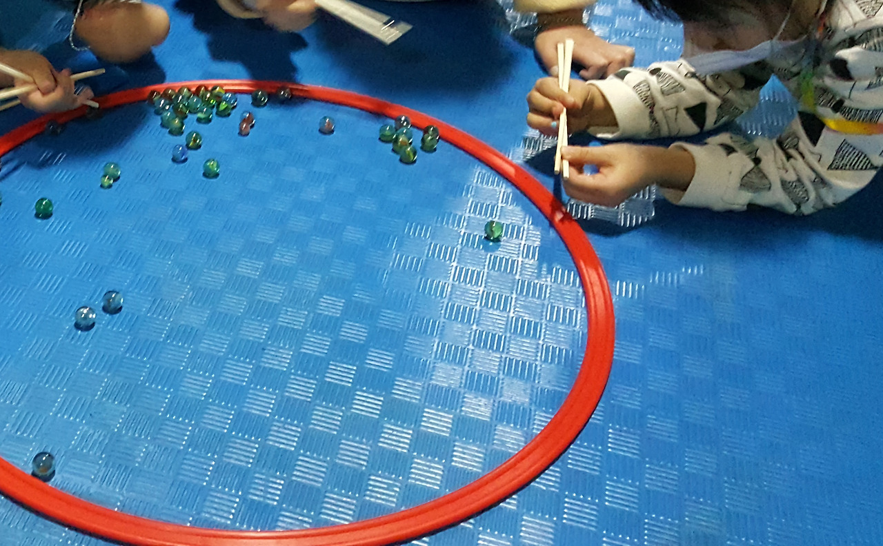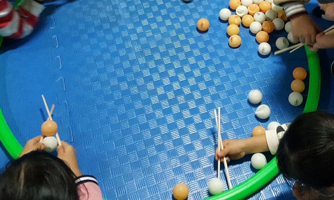 젓가락을 사용해 다양한 물체를 옮기는 놀이다.