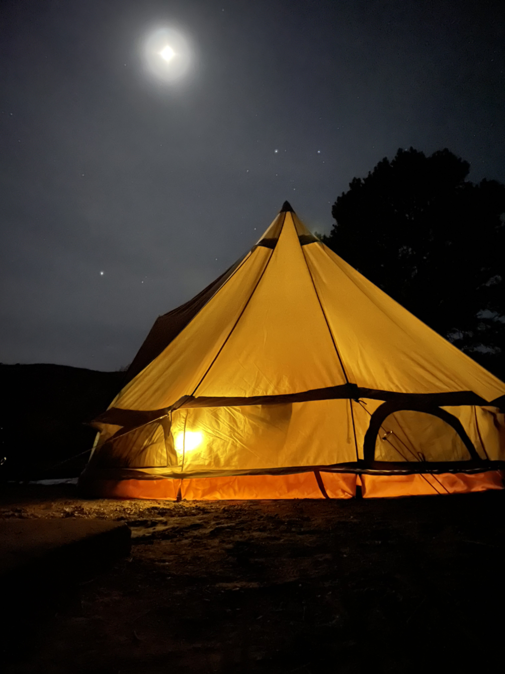 우리는 벨 텐트를 구입했고 텐트 치는 연습을 하려고 뒷마당 캠핑을 시도했다. 박아야 하는 말뚝은 많은데 공간이 없어 아쉬운 대로 한쪽만 제대로 치고 1박을 해보았다.