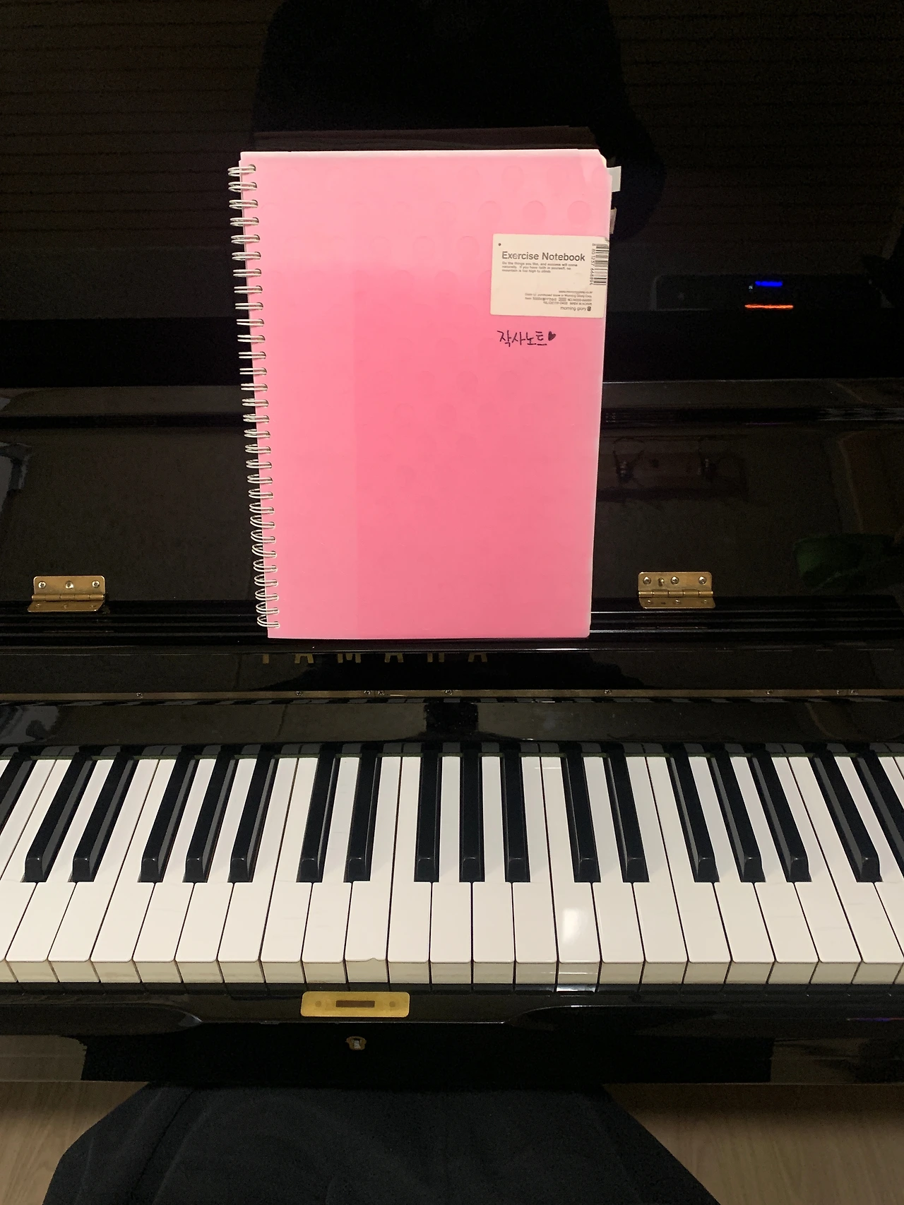 그래서 그 작사 노트를 서울에 들고 왔습니다. 부랴부랴 집 근처 피아노 연습실을 검색해 저번 주부터 일주일에 한 번씩 가고 있습니다. 오랜만에 피아노 앞에 앉으니 마치 입시 면접을 보는 것처럼 긴장이 되더군요. 지금 느끼는 떨림이 설렘인지 긴장인지 알 수 없이 모호하게 느껴졌습니다. 몇 년 만에 동창생을 만났을 때 들 법한 어색함이 저와 피아노 사이에 감돌았지요. 작사 노트에 기록된 곡들의 멜로디를 되짚어가며 건반을 두드리기를 한 시간, 실력이 굳어 충분히 연주하지도 못했지만 집에 돌아오는 길에는 전에 없던 충만감과 설렘이 마음속에 가득했습니다. 그렇게 제 자신에게 주는 선물로 커피 한 잔을 테이크아웃해 돌아왔습니다.