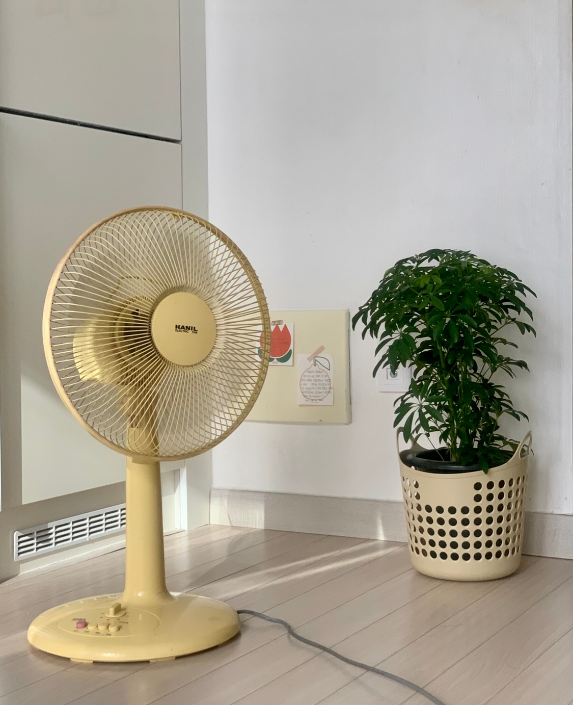 한편 여름마다 사용하고 있는 노란 선풍기 또한 본가에서부터 사용하던 물건입니다. 서울에서 새 제품으로 사라는 엄마의 말을 거역하며 전주에서부터 싣고 올라왔지요. 엄마가 말하길 혼수 제품이었다고 하니, 저보다 나이를 많이 먹은 셈입니다. 한 26년 정도 되었을까요. 요즘 시중에서는 찾아보기 어려운 버터 옐로 컬러에 세월에 따라 빈티지하게 바랜 빛깔이 매력입니다. 다만 너무 오래된 탓에 돌아갈 때마다 요란한 소리를 내서 밤에 잘 때는 조금 시끄럽다는 불편함도 있습니다. 그러나 그것 또한 감수하고 싶을 만큼 정겹게 느껴지는 물건입니다.