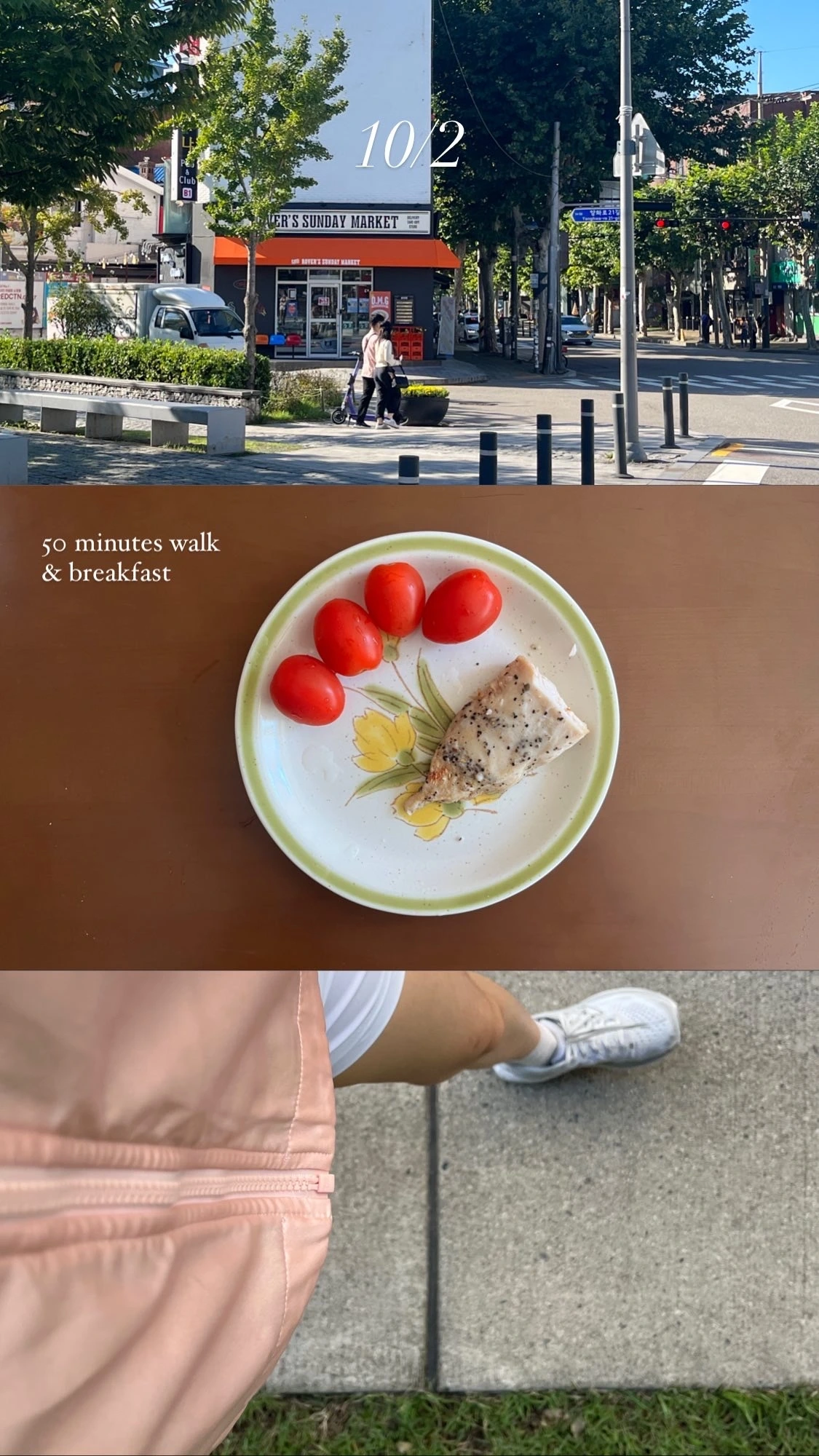 5. 옷을 갈아입고 30-40분 정도 가벼운 조깅을 하러 나갑니다. (비오는 날에는 집에서 10분 홈트를 합니다)
