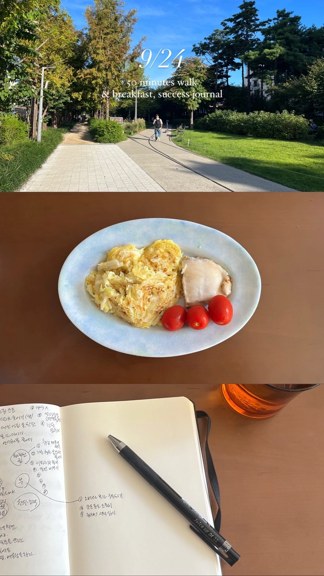 이러한 기록을 시작한 지 약 2주가 지났습니다. 이런 방식으로 소소하게 아침을 기록하는 것에서 오는 보람과 기분 좋음이 상당해 함께 실천해 보고자 '하루 세 장 아침 스토리'의 효용을 소개해 봅니다.