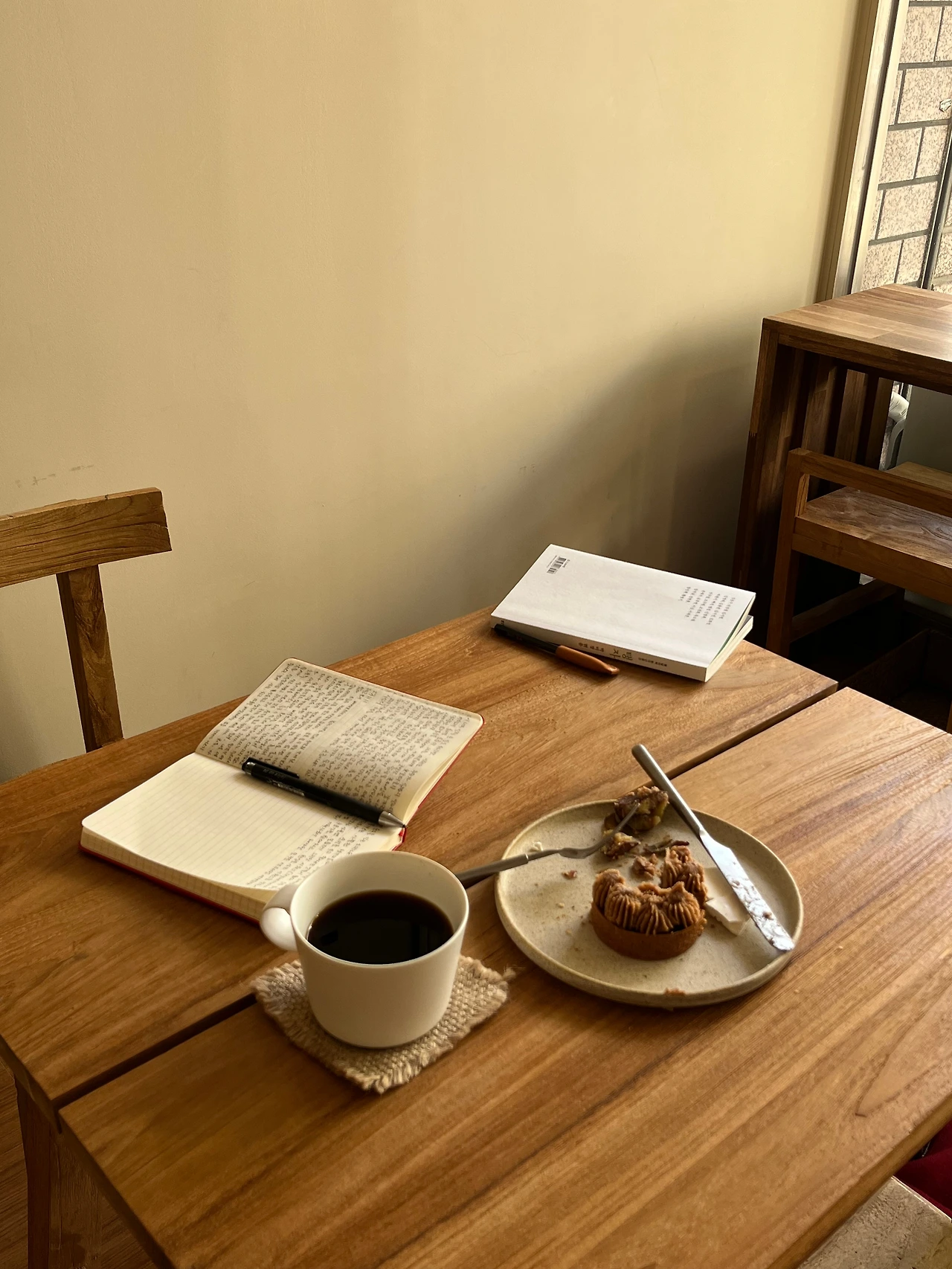 계절이 오롯이 담긴 간식에 애틋함을 느낀 건 그때부터일까요. 그 후 서울에 올라와서도 카페에 가면 평소에 먹을 수 있는 스콘이나 케이크보다, 제철 음식이 들어간 디저트를 고르고 있습니다. 그렇게 월요일에는 망원동의 ‘커피하우스’에서는 호지라떼와 함께 ‘밤만쥬’를 먹고, 토요일에는 연희동의 ‘헷키’에서는 따뜻한 드립커피와 함께 ‘밤 몽블랑’을 먹었습니다. 흙의 질감이 고스란히 느껴지는 그릇 위에 놓인 작고 귀여운 밤 모양의 만쥬를 아작아작 깨물으며 책도 읽고, 바삭한 타르트 위에 얹어진 구수한 커피밤크림과 밤조림을 조심스레 쪼개먹으며 따사로운 늦가을을 보내는 나날입니다. 더 추워지기 전에 사과 파이나 단호박 수프도 맛보고 싶군요.