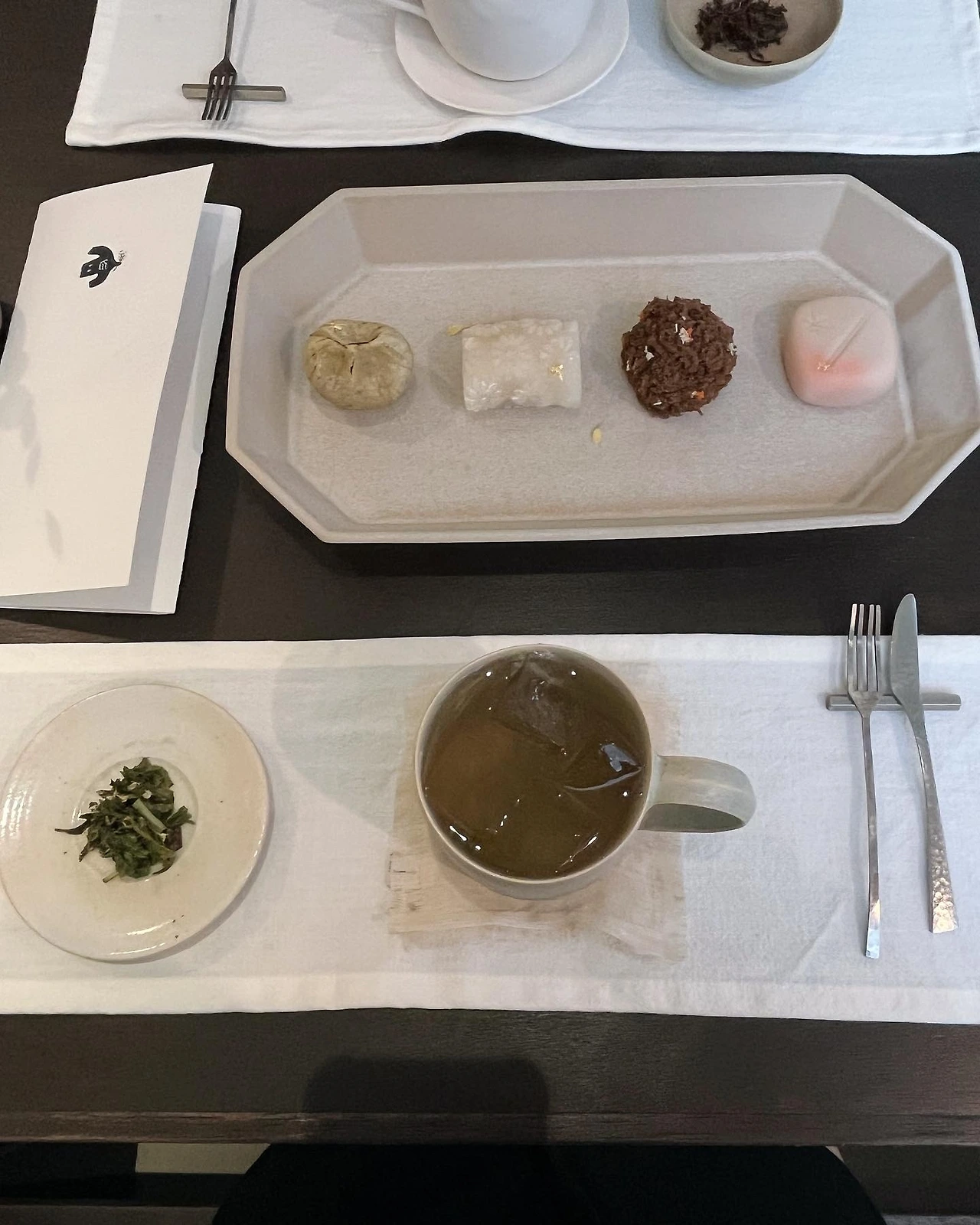 간식으로도 계절을 감상할 수 있구나, 그런 생각을 한 것은 얼마 전 대구로 여행을 갔다가 ‘페코’에서 가을의 화과자를 맛보았던 날이었습니다. 먼저 시원한 차로 입맛을 돋운 후, 단아한 그릇에 다소곳이 놓인 화과자 상차림을 맞이했습니다. 가을의 정취가 물씬 풍기는 알록달록한 색감과 섬세하게 빚어낸 손길이 담긴 모양새에 혀보다 눈이 먼저 반짝였습니다. 노을 지는 하늘과 그 속을 나는 잠자리를 홍옥 사과와 앙금으로 표현한 ‘노을’, 단풍이 드는 울긋불긋한 산을 햇 밤고구마 앙금과 구수한 버터, 검정깨로 층층이 표현한 ‘가을산’, 노란 단호박 앙금 위에 우아한 꽃무늬가 아름다운 ‘국화’, 밤조림을 옥광밤으로 만든 반죽으로 감싼 ’쿠리킨톤‘까지, 바쁜 일상을 살며 잊고 있던 가을 풍경과 시적 정취가 물밀듯이 쏟아져 들어왔습니다. 한바탕 휩쓴 후 어느새 낙엽처럼 차분히 가라앉은 마음 위에, 잠자리가 나는 붉은 하늘과 흙내음이 나는 산의 정경이 차례차례 포개졌습니다. 식탁 앞에 앉아 차 한 잔과 디저트를 맛보았을 뿐인데, 가을을 만끽하는 여행을 훌쩍 떠나 온 기분이 들었습니다. 사과와 밤, 단호박의 상큼하고 구수한 맛의 매력에 푹 빠져, 이것이 가을의 맛인가... 하며 뿌듯한 마음을 조물거렸습니다.