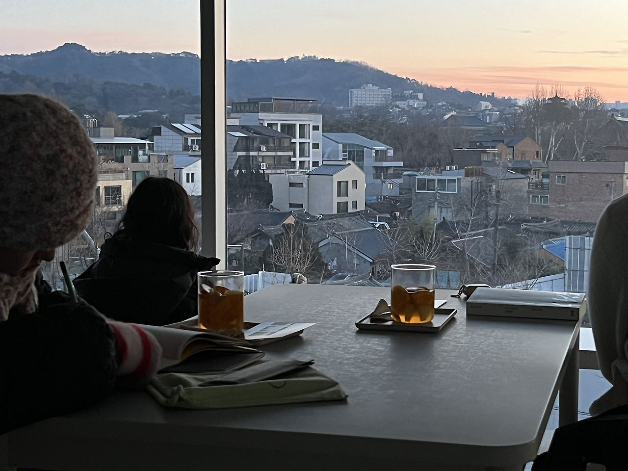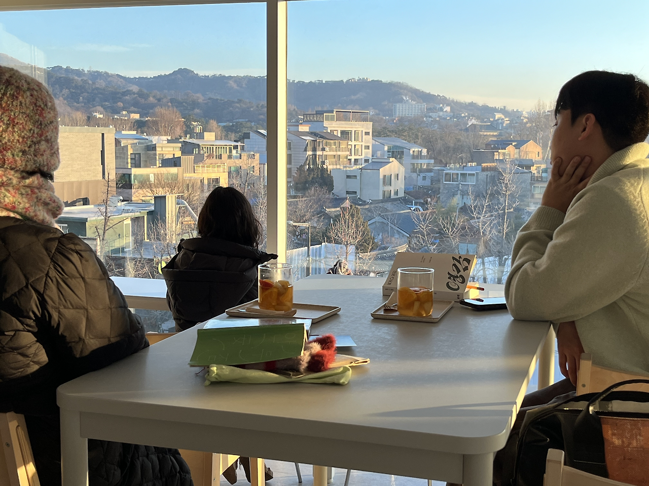 동이 채 뜨기 전, 아침 7시 반. 저는 서촌의 한 카페에 있었습니다. 연말을 며칠 앞둔 오늘, 아침 일찍이 이곳을 찾은 이유는 ‘음악‘을 듣기 위해서입니다. <월간 음감회>는 작가 무과수의 책, 카페 네스트의 차, 수관기피의 곡 큐레이션으로 구성된 행사로, 월에 한 번씩 차를 마시며 한 시간 남짓 음악을 듣고 싶은 사람들이 모입니다. 이번 달의 주제는 ‘겨울의 낭만‘. 밝아오는 여명 속에서 사람들이 삼삼오오 자리를 찾아가고, 겨울에 어울리는 딸기와 귤이 차곡차곡 쌓인 따뜻한 차이티 뱅쇼와 함께 구석의 테이블에 다소곳이 자리를 잡았습니다. 창을 마주 보고 앉아 풍경 속에 푹 빠져 있자, 곧이어 잔잔한 음악이 꽃봉오리 터지듯 시작되었습니다.