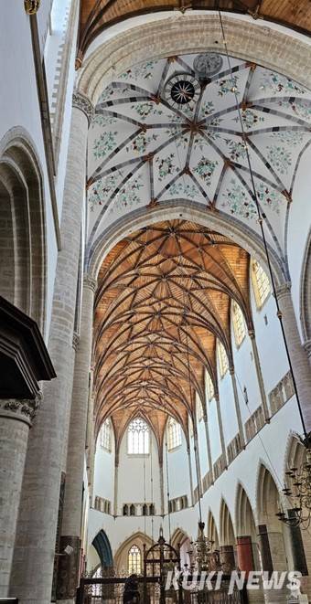 천정은 신성 로마 제국의 황제인 카를(Karl) 5세의 아버지인 부르고뉴 공작 미남 왕 필리프(Philip) 1세의 문장인 별모양으로 장식되었다. 필리프 1세는 이 아치형 지붕이 지어진 1500년에 네덜란드의 군주였기 때문이다. 바닥에서 20m가 넘는 높이에 오크 나무로 만든 별모양의 아치형 천장(The oak stella vault)을 완성하는 데 8년이 걸렸으며 8개의 별들로 구성되어 있다.