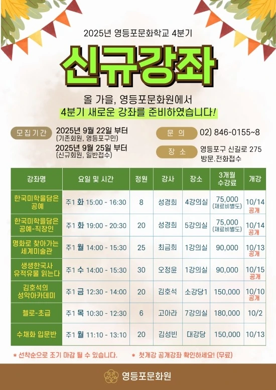 2025년 9월 22일부터 기존회원, 영등포구민 전화접수 가능