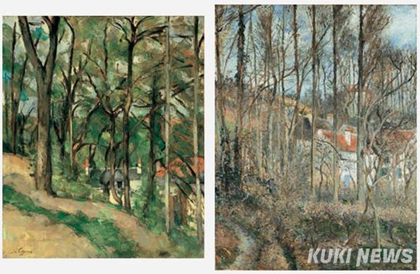 왼쪽: 폴 세잔, 코트 생 드니 퐁투아즈(La Cote Saint-Denis, Pontoise), 1877년경