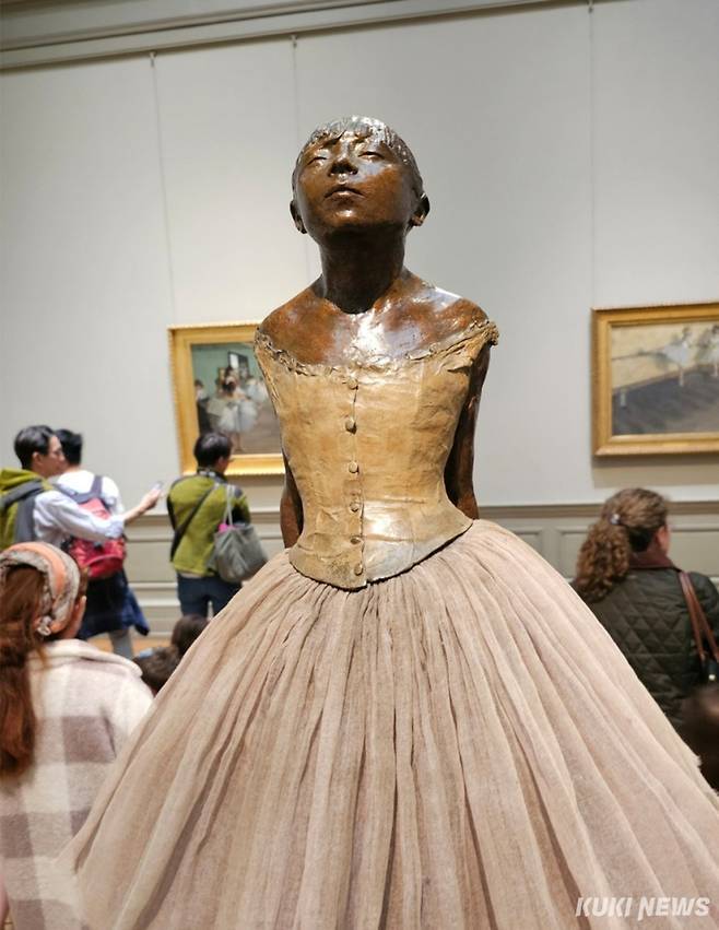 에드가 드가, 14세 어린 발레리나, 1922년 캐스트, 2018년(tut), 부분적으로 착색된 청동, 면 파탄, 실크 새틴, 나무, 메트로폴리탄 박물관