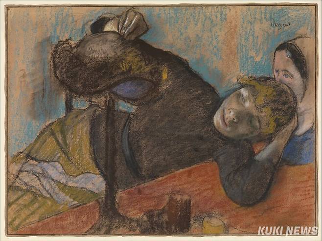 에드가 드가, 모자 장사, 약 1882, 따뜻한 회색 직조지에 파스텔과 목탄, 47.6 x 62.2cm, 메트로폴리탄 미술관