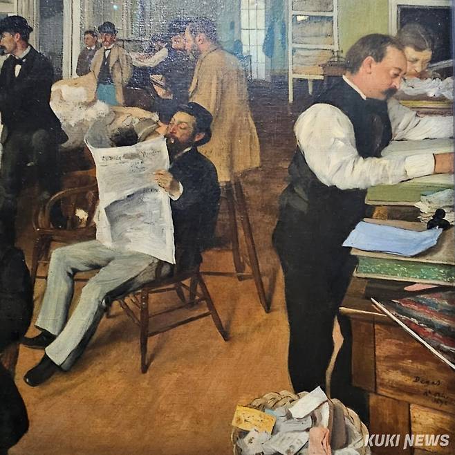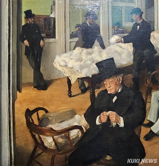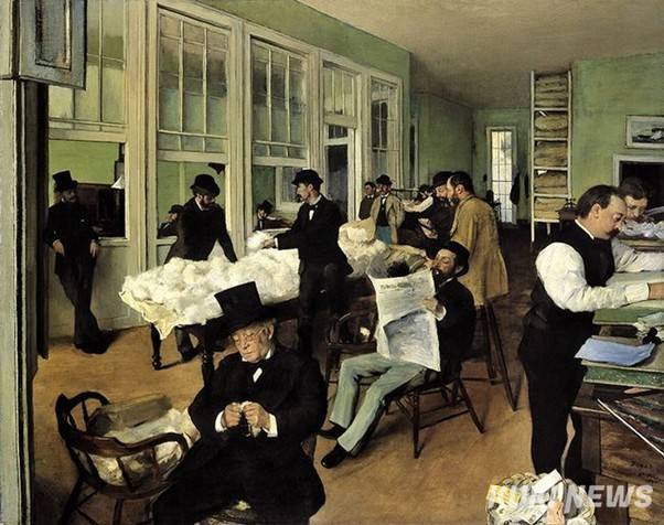 에드가 드가의 <뉴올리언스의 면화 사무소>는 산업과 상업의 세계를 사실적으로 담아낸 독특한 주제였다. 또한 미국 남부의 목화 산업, 노예제도, 그리고 재건기의 정치적 갈등까지 읽어 낼 수 있는 시대의 보고서로 포 미술관을 대표하는 걸작이 되었다.