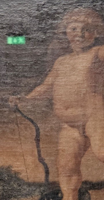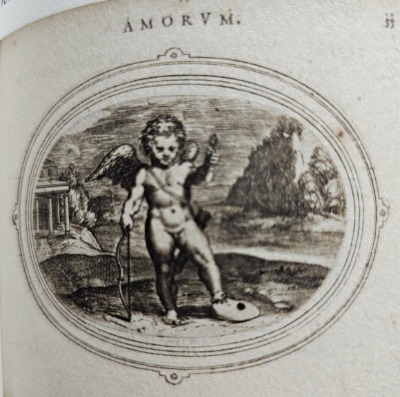오토 반 벤은 루벤스의 스승으로 유명한 화가이다. 큐피드가 비슷한 자세와 행동을 하고 있다는 점만 같을 뿐, 그가 치켜든 손에 기게스의 반지(ring of Gyges)를 들고 있다는 점만 다르다. 전설에 따르면, 이 반지는 착용자를 보이지 않게 만드는 도깨비감투와 같다.