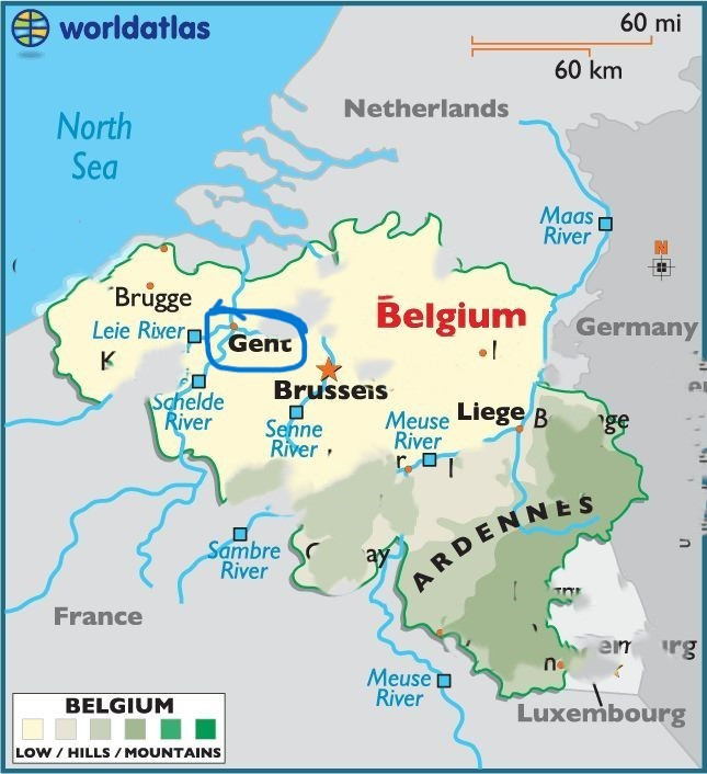 북유럽 벨기에의 면적은 대한민국의 1/3 정도이지만 유럽의 작은 거인이라 불린다. 겐트(Gent)는 수도 브뤼셀에서 북서쪽으로 50 km 떨어진 도시로 플라망어로 헨트라고 한다. 겐트는 ‘합류점’이라는 뜻으로, 중세의 교통로인 물줄기가 도심까지 연결되어 있다.
