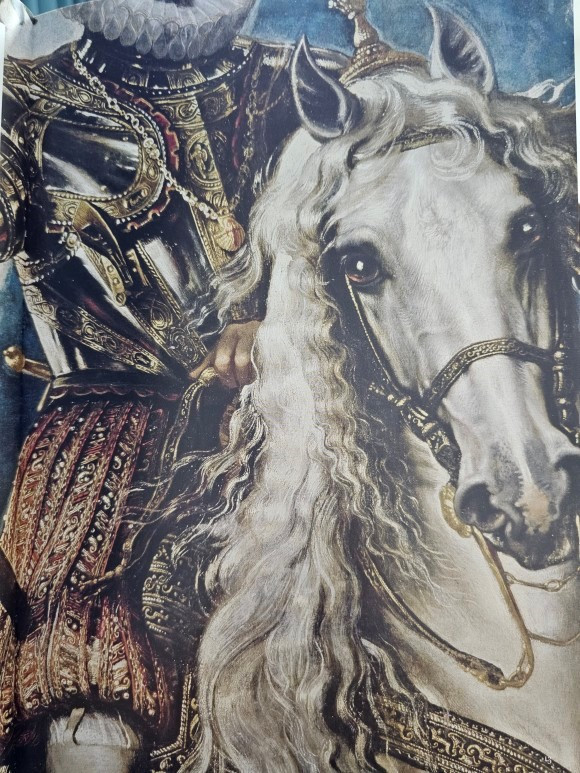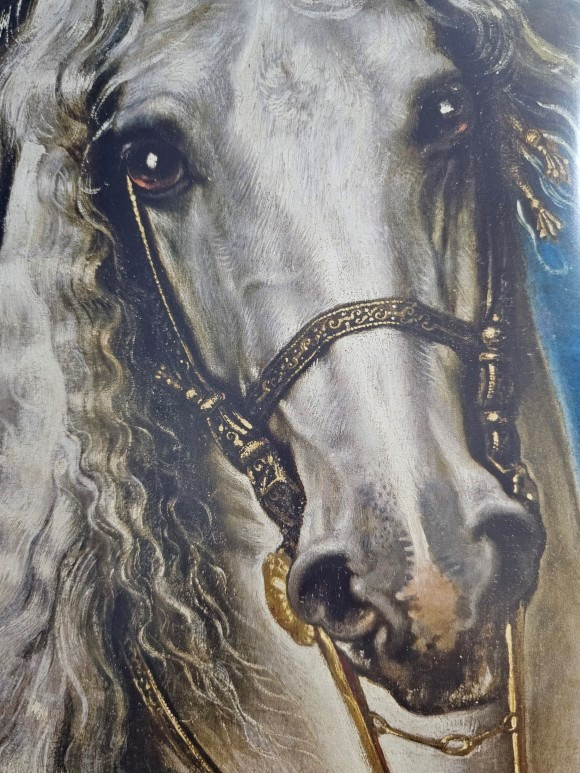 우리는 공작의 애마를 묘사한 것이라는 걸 짐작할 수 있다. 긴 갈기와 꼬리가 바람에 흩날리고, 반짝이는 눈과 넓적한 콧구멍을 가진 이 말은 아름다움과 힘으로 우리에게 깊은 인상을 준다