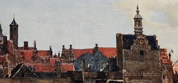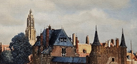 [델프트의 풍경]의 신교회 고딕 첨탑의 마티에르