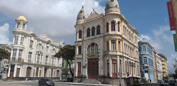 헤시페 히우브랑코 광장 역사지구에서 새로운 건물은 다른 건물과 다른 설계여야만 시가 허가를 내주었다. 파란 하늘 아래 빛이 튕겨져 나오는 컬러풀한 색감이 눈이 부시다.