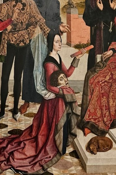 디르크 바우츠, 정의의 패널화: 오토 3세 앞에서 불의 심판을 받고 있는 백작부인 부분, 1468년경, 유화, 182x324cm, 벨기에 브뤼셀 왕립미술관