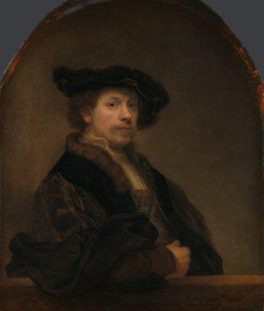 렘브란트, 34살의 자화상, 1640, 런던 내셔널 갤러리: 이는 렘브란트의 중년 시절 자화상으로 베렛를 쓴 자부심이 넘치는 당당한 모습이다