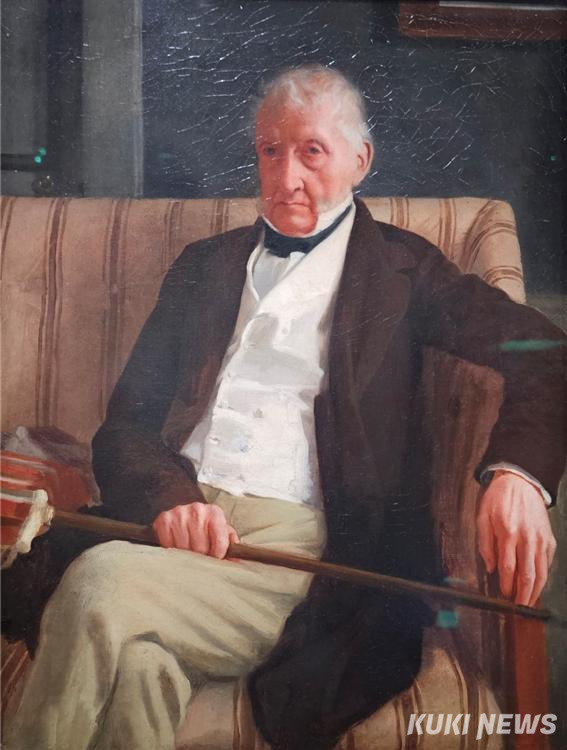 이탈리아에 머물던 손자 드가는 할아버지의 초상화를 그렸다. 87 세에 노인은 가족의 궁전에서 지팡이를 무릎 위에 올리고 소파에 앉아 있는 권위적인 가장으로 묘사된다. 자수성가하여 자부심이 넘치는 백발의 노신사는 혈색도 매우 좋다. 또렷한 안광과 꽉 다문 입매가 여전히 일과 가정에서 영향력을 행사하고 있음을 보여준다.