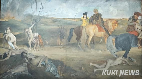 에드가 드가, 중세 전쟁 장면(오를레앙 시의 불행이라고 잘못 알려진), 1865년경, 85x147cm, 캔버스에 덧붙인 종이 위에 기름, 오르세 미술관
