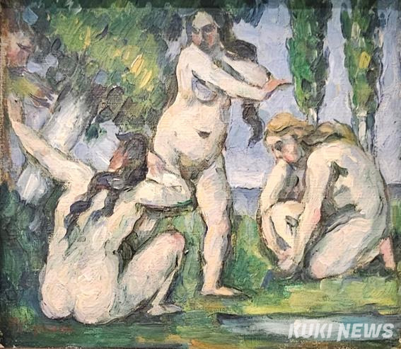 서양미술에서 누드는 중요한 주제이다. 인상주의의 누드라면 풍만한 여인이 부드러운 밝은 빛으로 둘러싸인 르누아르가 연상된다. 마티스가 자신의 소장품 중 가장 아꼈던 것은 <목욕하는 세 여인>을 그린 세잔의 작은 누드화였다. 마침 오랑주리 미술관에서 세잔의 누드전을 하고 있어 궁금하던 이 작품을 관람할 수 있었다.