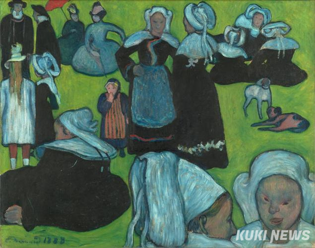 고갱이 퐁타벤에서 그린 여인들은 황토색의 어두운 피부색에 투박한 입술로 프랑스 여인이 아니고 타히티의 여인들이다. 이 작품은 2013년 서울시립미술관 전시에서 한국을 찾았다.