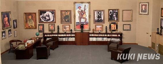 1930년경 22번가 포슈에 위치한 기욤의 아파트에서 화랑을 운영, 레미 무니에르(Rémi Munier)가 모형 제작, 2006년. 드랭, 마티스, 피카소, 모딜리아니와 비어 있는 프레임은 아직 확인되지 않은 작품