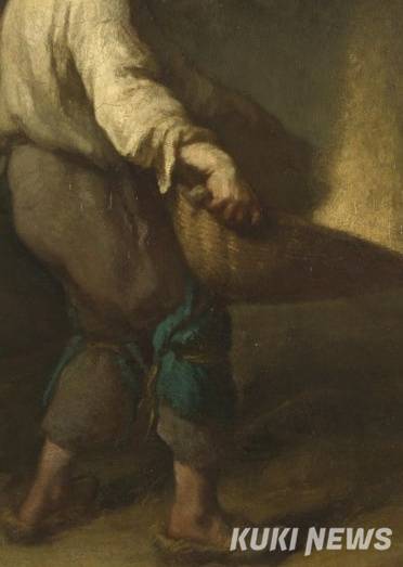 그의 손끝에서 흩날리는 황금빛 검불은 마치 빛을 머금은 듯 신비로운 분위기를 자아낸다. 시카고 미술관에 있는 300년 전에 티치아노(Tiziano Vecellio, 1485/90~1576)가 그린 <다나에>의 황금비와 밀레의 황금빛 검불에서 시대와 주제의 변화를 한눈에 볼 수 있다.