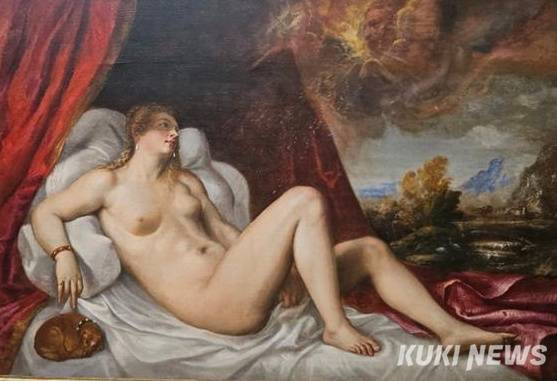 <다나에>는 티치아노의 대표작으로 6개의 버전으로 그려졌다. 이는 고대 로마의 시인 오비디우스(Ovidius)와 이탈리아의 작가 보카치오(Boccaccico)에 의해 언급된 다나에 공주에서 소재를 가져왔다. 다나에의 아들이 외할아버지 아르고스의 왕 아크리스우스(Acrisius)를 살해할 것이라는 신탁에 왕은 다나에를 청동탑에 가둔다. 그러나 바람둥이 제우스는 황금비로 변해 다나에를 유혹한다는 전설이다. 티치아노는 제우스가 뿌리는 황금비를 묘사하는데 있어 다양한 방식을 사용하여 클림트를 비롯한 후대의 화가들에게 영감을 주었다.
